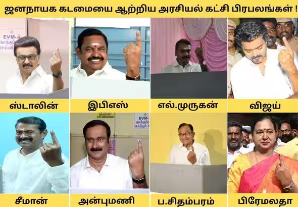 இதேபோல், L. Murugan, Anbumani Ramadoss, T. T. V. Dhinakaran உள்ளிட்ட தலைவர்களும் தங்கள் வாக்குகளை பதிவு செய்தனர்.