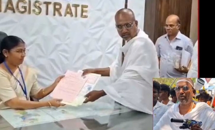 தமிழக சட்டமன்றத் தேர்தலை முன்னிட்டு பல்வேறு வேட்பாளர்கள் வேட்பு மனு தாக்கல் செய்து வரும் நிலையில், நாமக்கல் தொகுதியில் ஒரு வேட்பாளர் நூதனமான முறையில் வேட்பு மனு தாக்கல் செய்து அனைவரின் கவனத்தையும் ஈர்த்துள்ளார். அகிம்சா சோசலிஸ்ட் கட்சியின் நிறுவனரும், சமூக ஆர்வலருமான காந்தியவாதி ரமேஷ் (43) இந்த வித்யாசமான முயற்சியை மேற்கொண்டுள்ளார்.