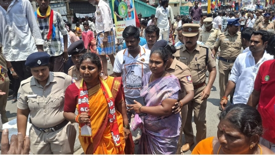 போலீசார் வந்து அவர்களை வெளியேறுமாறு அறிவுறுத்தினர். போக மறுத்தவர்கள் வாக்குவாதத்தில் ஈடுபட்டனர். போலீசார் வலுக்கட்டாயமாக வெளியேற்றினர். வித்யா ராணி அழுதபடி சாலையில் அமர்ந்து “என்னைக் கைது செய்யுங்கள்” என வாக்குவாதம் செய்தார்.