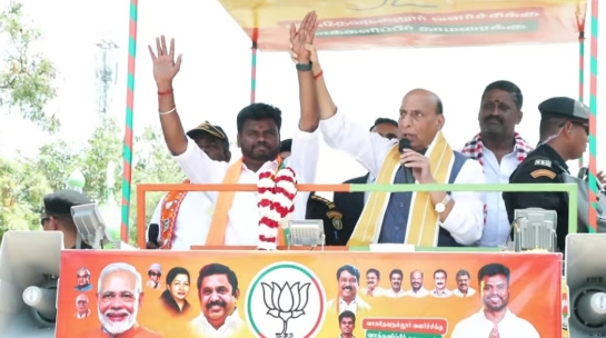 தென்காசி: ‘தேசிய ஜனநாயக கூட்டணி ஆட்சி அமைந்தவுடன் திருப்பரங்குன்றத்தில் கார்த்திகை தீபம் ஏற்றுவோம்’ என்று மத்திய அமைச்சர் ராஜ்நாத் சிங் தெரிவித்தார். தென்காசி மாவட்டம், வாசுதேவநல்லூர் தொகுதியில் பா.ஜ.க. வேட்பாளர் ஆனந்தன் அய்யாசாமிக்கு ஓட்டு சேகரித்து, புளியங்குடி அரசு மேல்நிலைப் பள்ளி அருகிலிருந்து சிந்தாமணி பேருந்து நிலையம் வரை சாலை வழியாக ராஜ்நாத் சிங் சென்றார். சாலையின் இரு புறமும் கூடியிருந்த பா.ஜ.க. தொண்டர்கள் உற்சாகத்தால் வரவேற்பு அளித்தனர்.