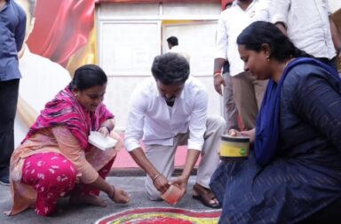“பெரம்பூர் தொகுதியில் வீடு வீடாக வாக்கு சேகரித்த தவெக தலைவர் விஜய்”