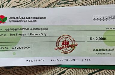 காசோலை வடிவிலான அதிமுக துண்டுப்பிரசுரங்கள் பறிமுதல் – சேலம் ஆத்தூர்