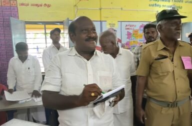 எந்த பொத்தானை அழுத்துவது என தெரியாமல் தடுமாறிய திண்டுக்கல் சீனிவாசன்.. வாக்குச்சாவடியில் பரபரப்பு