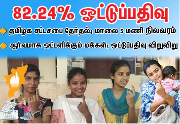 தமிழக சட்டசபை தேர்தல்: மாலை 5 மணி நிலவரப்படி 82.24% வாக்குப்பதிவு.. மக்கள் உற்சாகம்!