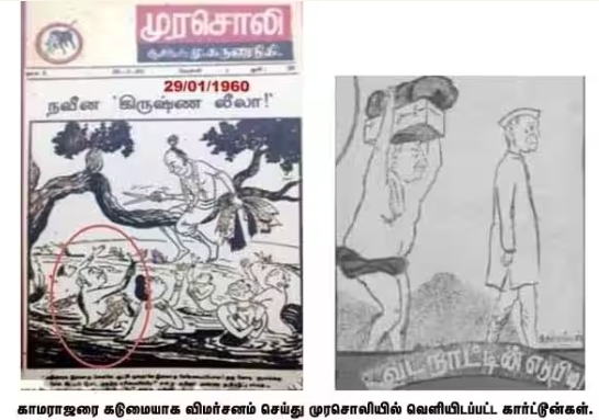 2025ல் கூட, திமுக எம்பி திருச்சி சிவா, காமராஜரின் எளிமையை விமர்சித்து, ‘அவர் AC அறையில்லாமல் தூங்க மாட்டார்; இறுதிக்காலத்தில் கருணாநிதியிடம் உதவி கேட்பார்’ என்று பேசினார். இது சர்ச்சையாக மாறியது. பலர் இப்போது திமுகவின் இரட்டை வேடத்தை நம்பாமல், அன்று அவர்கள் காமராஜர் மீது திட்டிய வசவுகளை வைரலாக்குகின்றனர். திமுக ஆதரவு நாளேடுகளில் வெளியிடப்பட்ட காமராஜர் கார்ட்டூன்களை மீண்டும் பகிர்ந்து திமுகவை சாடிவருகின்றனர்.