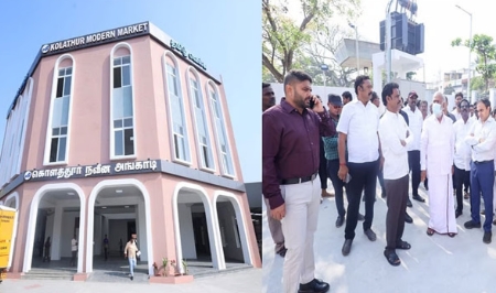 அதனைத் தொடர்ந்து பெரம்பூர் பேப்பர் மில்ஸ் சாலையில் சென்னை பெருநகர் வளர்ச்சி ஆணையம் (சி.எம்.டி.ஏ.) சார்பில் கட்டப்பட்டுள்ள கொளத்தூர் நவீன அங்காடி கட்டிடத்தையும் அமைச்சர் பார்வையிட்டு ஆய்வு செய்தார். மேலும் வார்டு 68-இல் உள்ள ஜவஹர் நகரில் பெருநகர சென்னை மாநகராட்சி சார்பில் கட்டப்பட்டு வரும் மகளிர் உடற்பயிற்சி கூடத்தின் பணிகள் குறித்து அதிகாரிகளிடம் கேட்டறிந்தார். அதேபோல் வார்டு 70-இல் உள்ள ரமணா நகர், கவுதமபுரம் பகுதியில் பல்நோக்கு மையக் கட்டிடத்தில் அமைக்கப்பட்டு வரும் நியாய விலை கடைகளின் இறுதிக்கட்ட பணிகளையும் அமைச்சர் நேரில் பார்வையிட்டு, பணிகளை விரைவாக முடிக்க அதிகாரிகளுக்கு அறிவுறுத்தினார்.